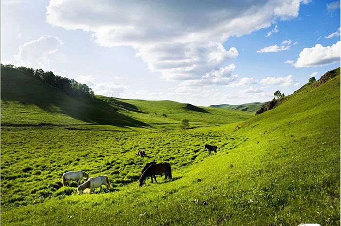 夏天的草原綠草如茵,深呼吸一口,清香的草木味撲鼻而來,讓人心曠神怡、如癡如醉。漫游在草原上,風吹草動,形成了一幅如詩如畫的景象,正如北朝民歌“天蒼蒼,野茫茫,風吹草低見牛羊”!騎在馬背上,悠哉游哉,仿佛進入了世外桃源。